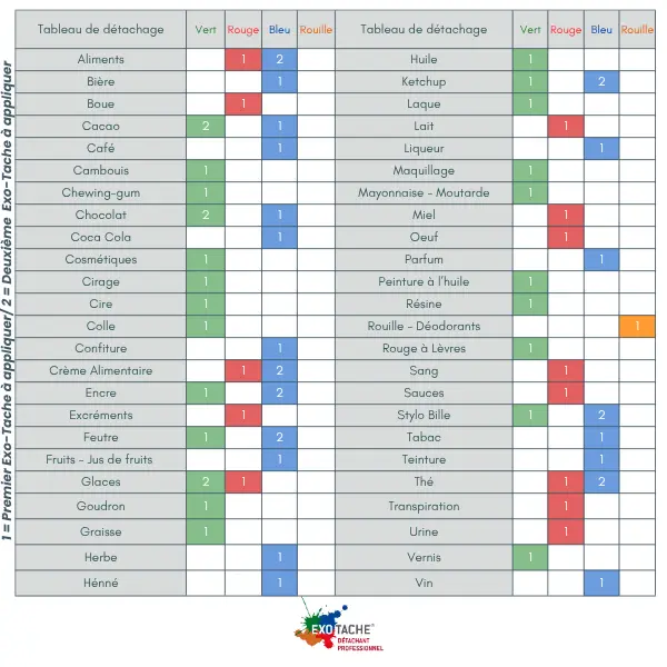Exo-tache est réputé pour sa simplicité d'utilisation : il suffit d'appliquer quelques gouttes sur la tache, puis de laver en machine ou de rincer à l'eau.